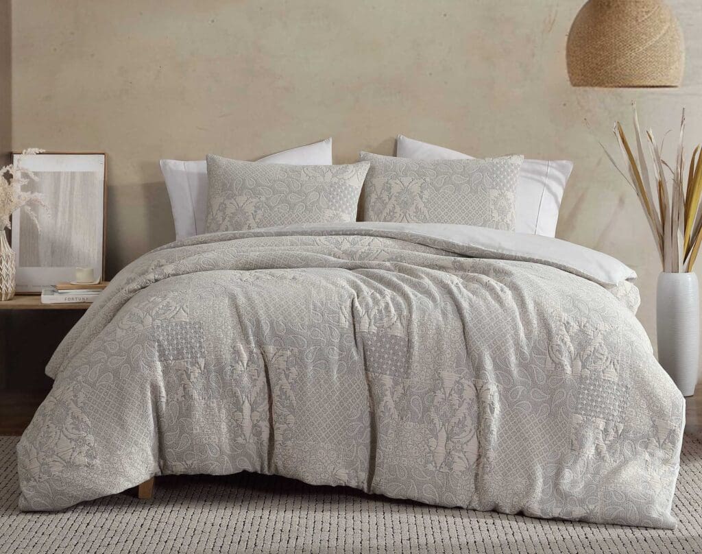 Peyton Ivory/Gray 3 pc Queen Comforter Set