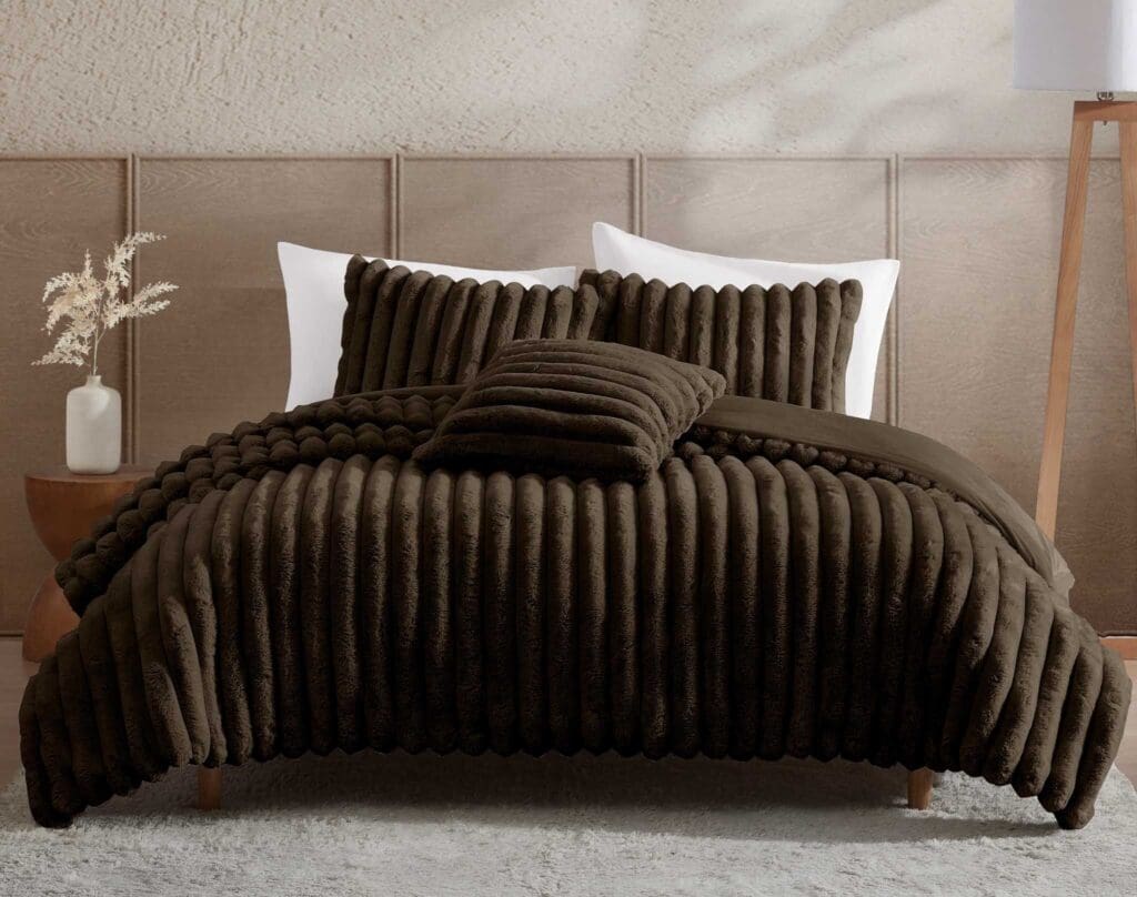 Bubble Faux Fur Tan 4 pc Queen Comforter Set NEVER COMPRESSED