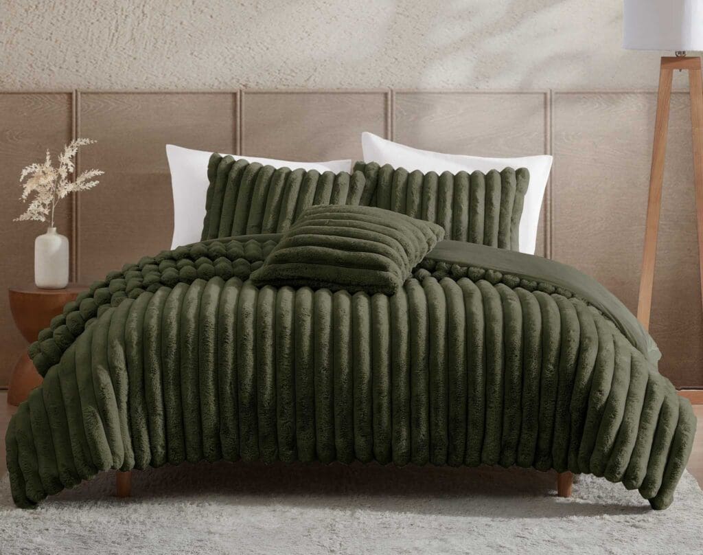 Bubble Faux Fur Green 4 pc Queen Comforter Set NEVER COMPRESSED