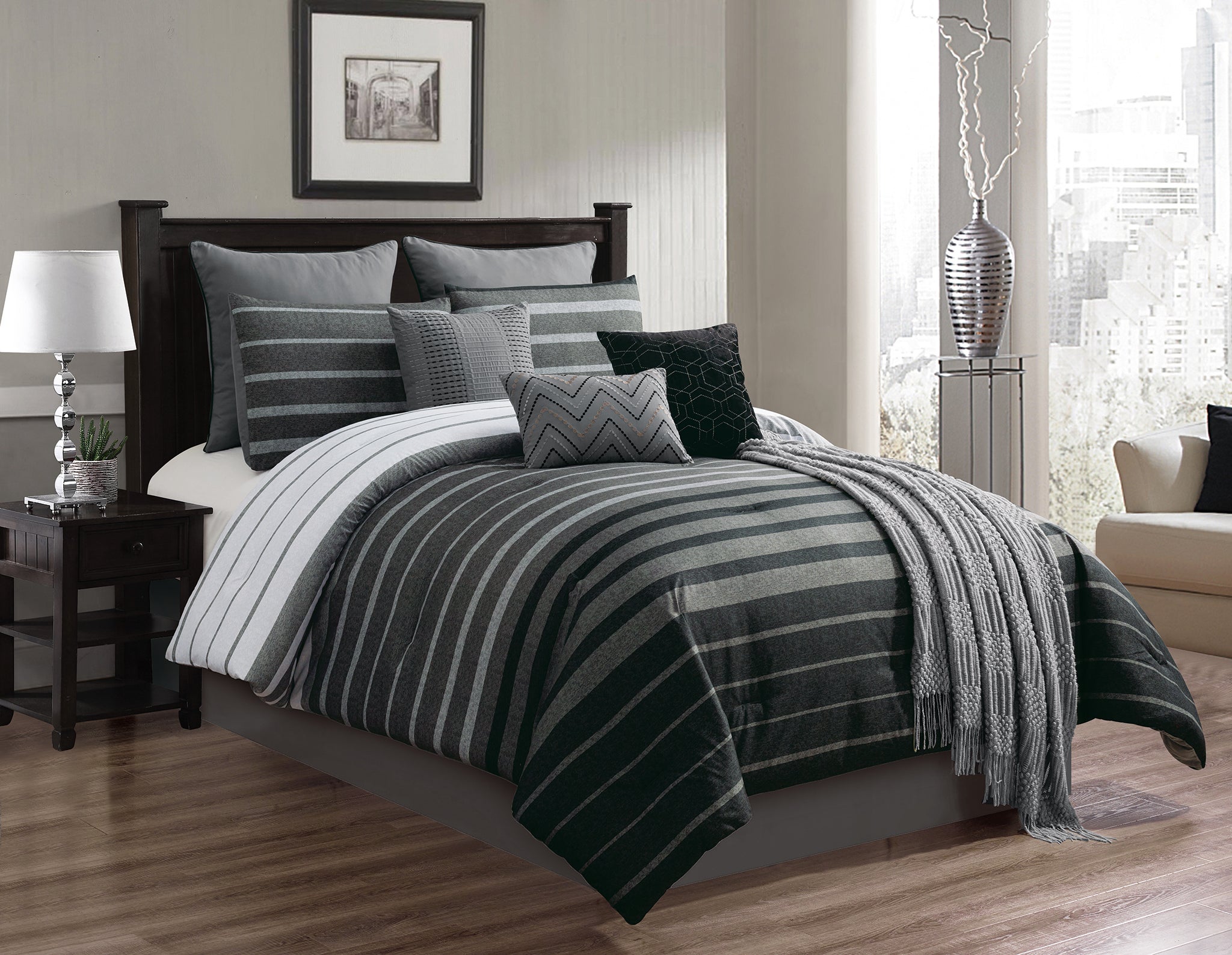 Black Gray Stripe 10 pc King