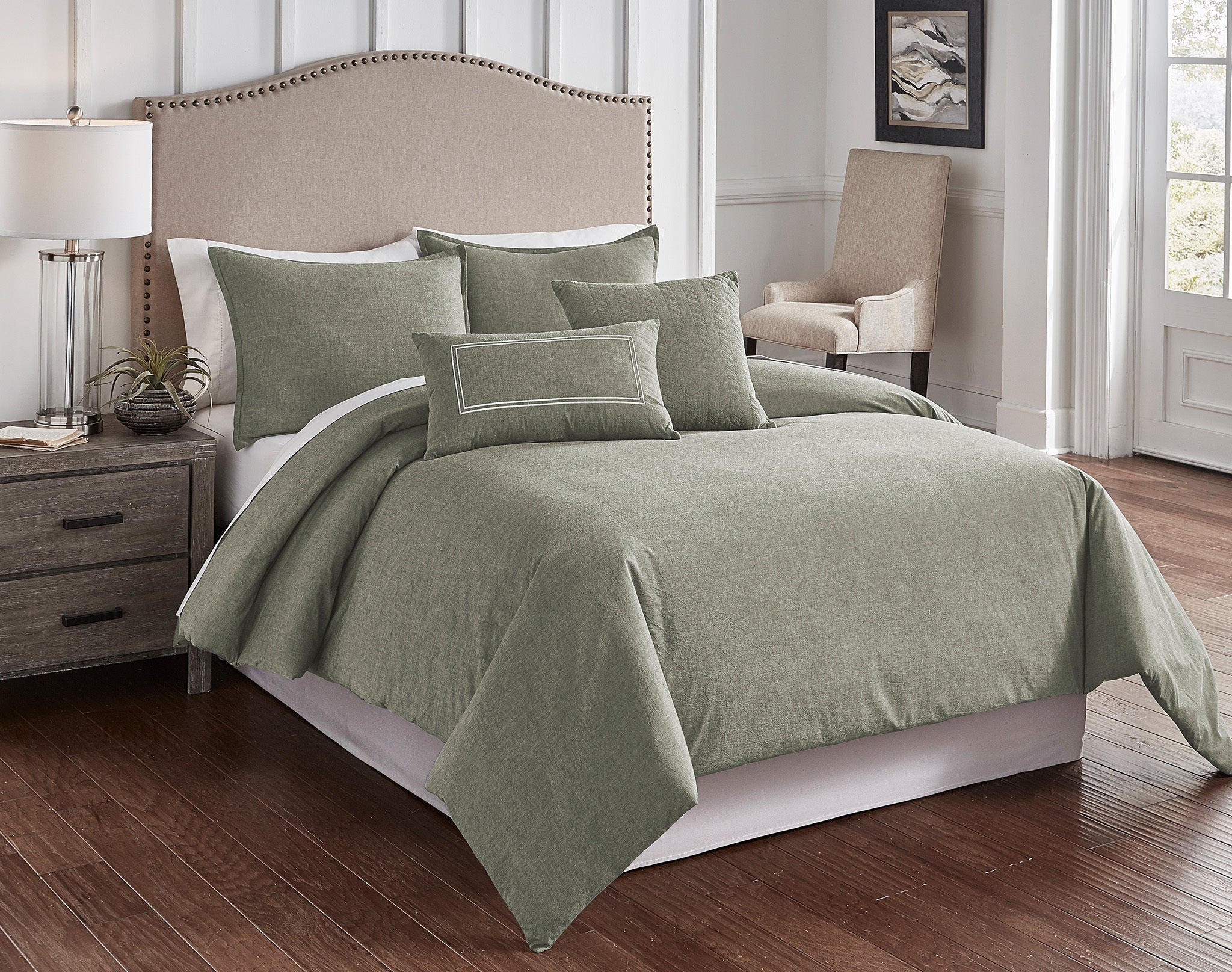 Chambray Sage 6 pc Queen Comf. Cover Set