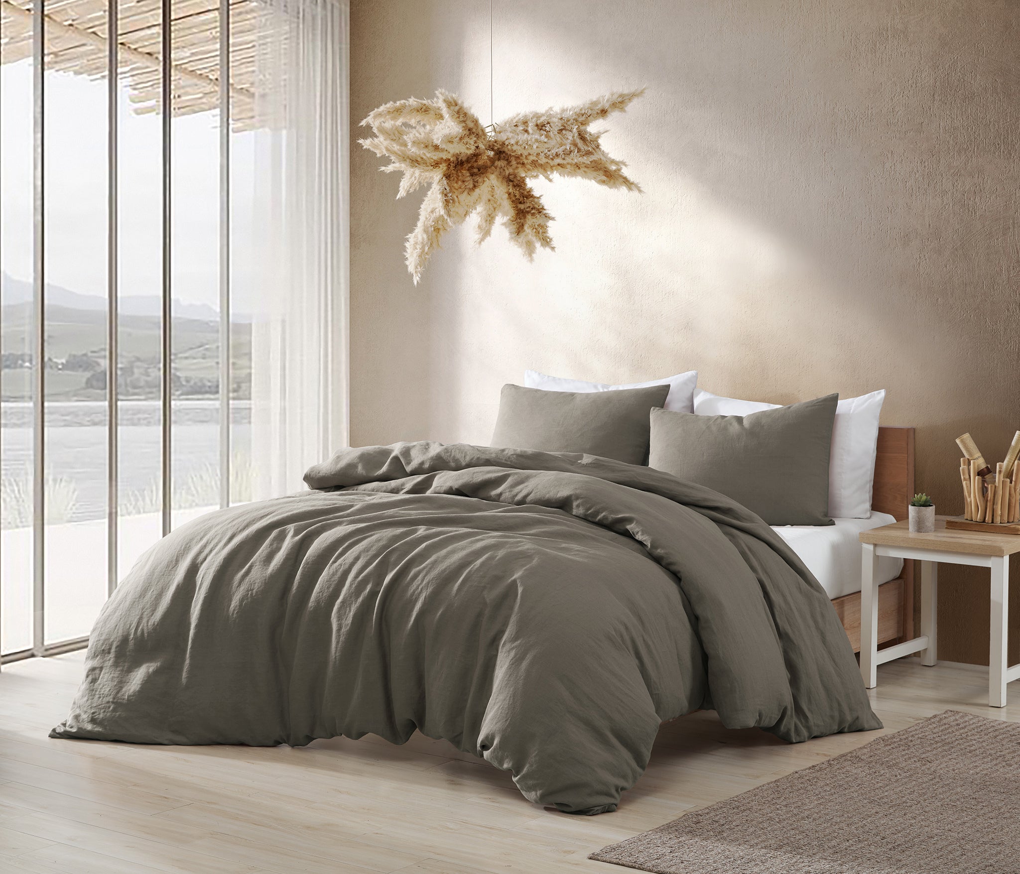 Content:100% Linen Face/100% Cotton Back; Filler: 100% polyester face/100% polyester filling; Care: Use front load commercial washer and dryer, machine wash cold delicate, wash with like colors, Only non-chlorine bleach when needed, tumble dry low, remove promptly.