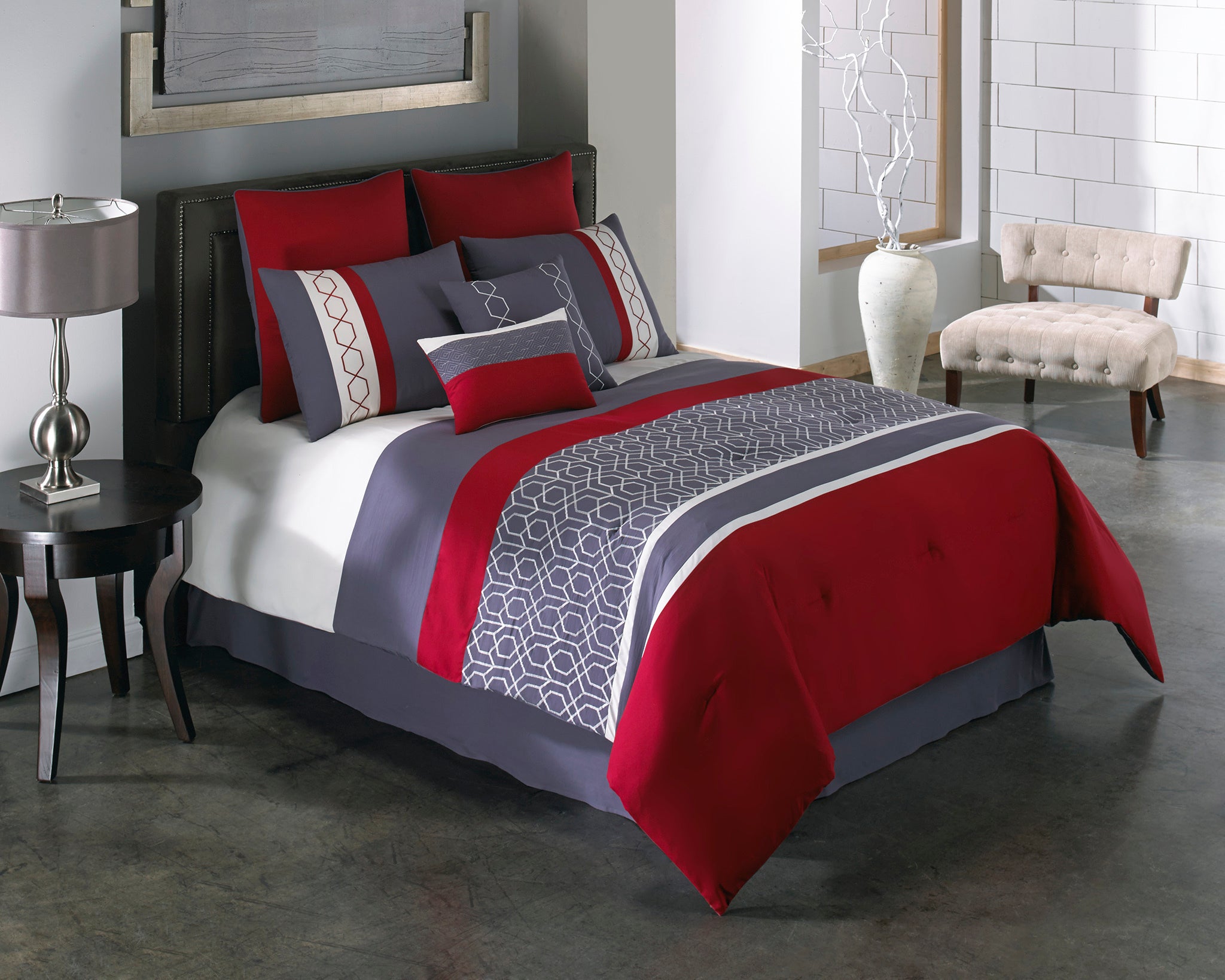 Geo Banded Embroidery 8 pc King