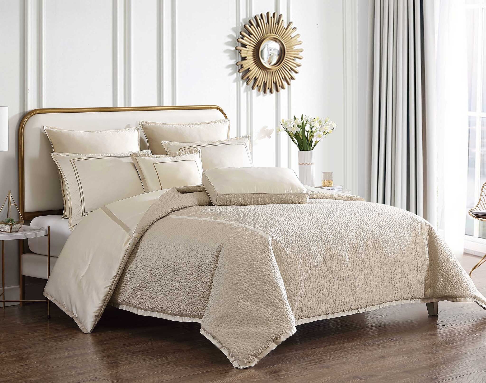 - 1 Queen Comforter (96-in W X 96-in L), 2 Standard Shams (20-in W X 26-in L), 1 Square Pillow (18-in W X 18-in L), 1 Boudoir Pillow (14-in W X 22-in L), 2 Euro Shams (26-in W x 26-in L)