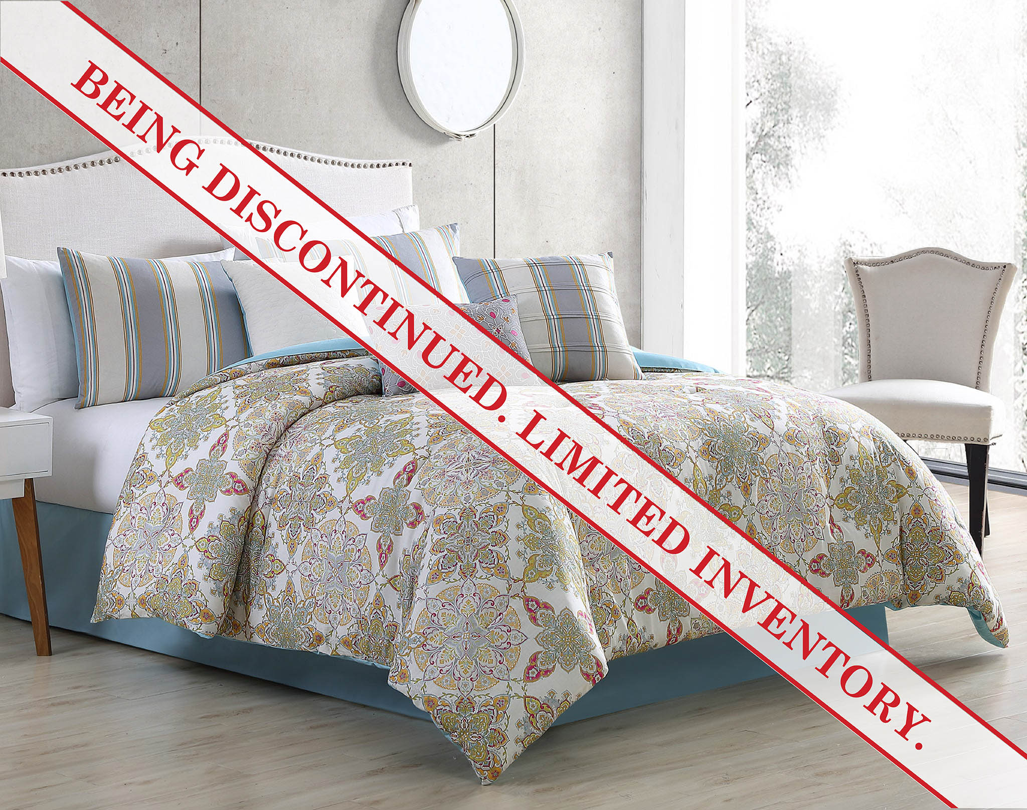 • 1 Queen Comforter (96-in W X 92-in L), 2 Standard Shams (20-in W X 26-in L), 1 Square Pillow (18-in W X 18-in L), 1 Boudoir Pillow (12-in W X 18-in L), 1 Square Pillow (16-in W X 16-in L), 1 Queen Skirt (60-in W X 80-in L + 15-in Drop)