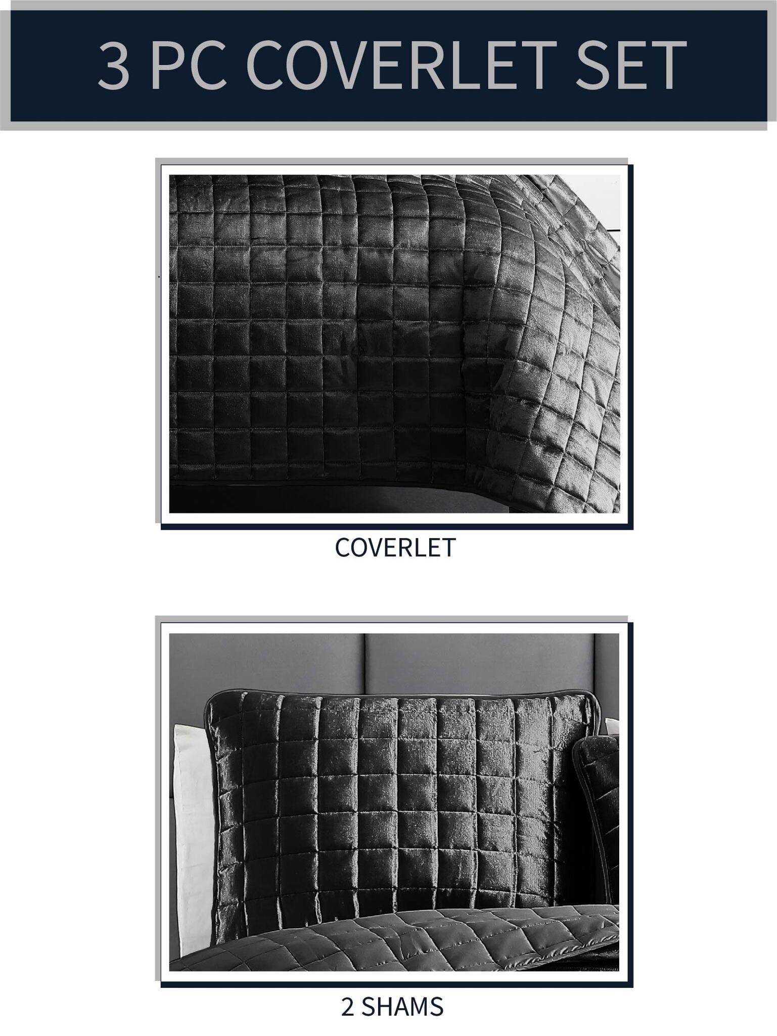 Luxe 3PC King Graphite Velvet Coverlet