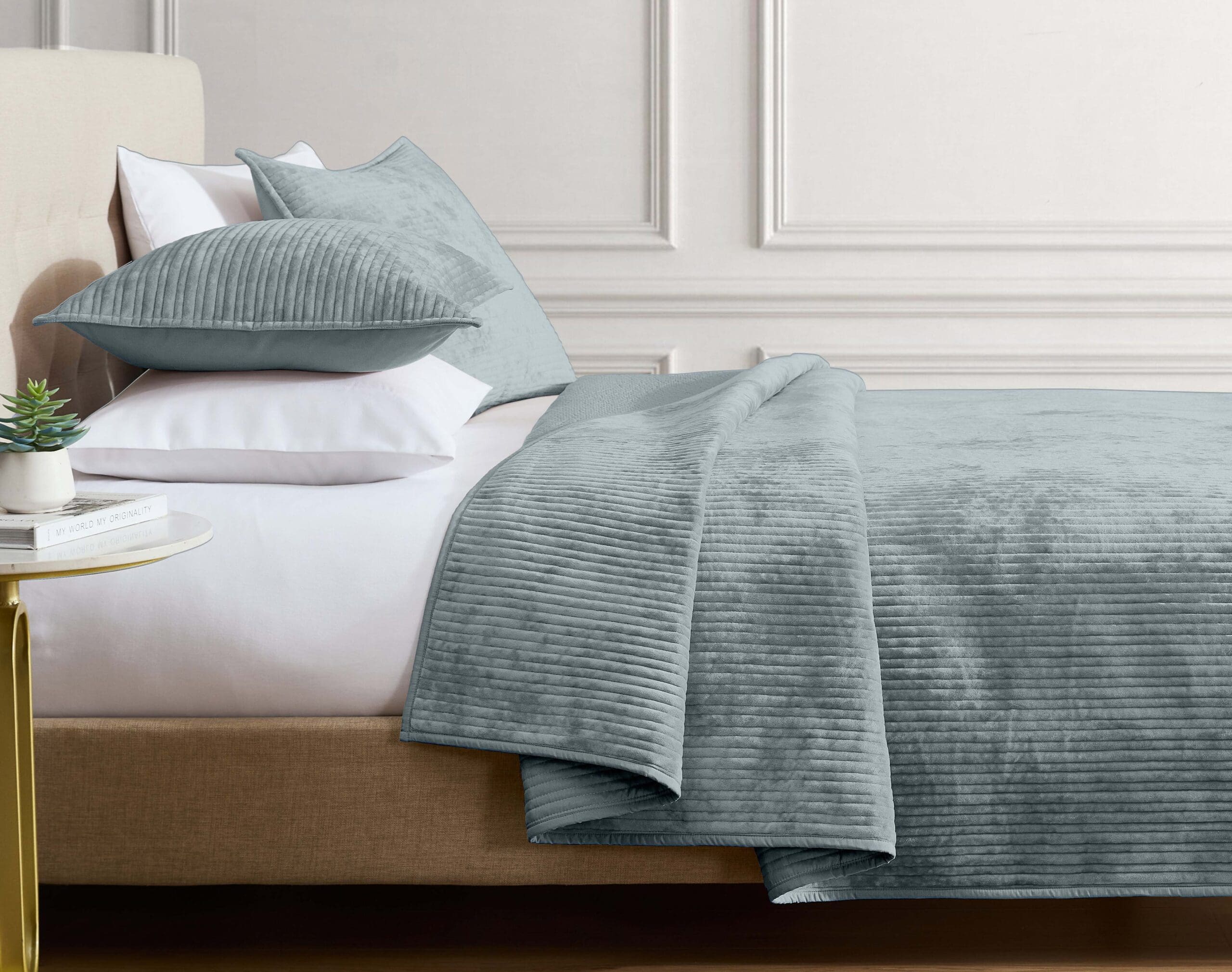 Renel Narrow Channel Velvet 3 pc Coverlet – Blue Queen-B