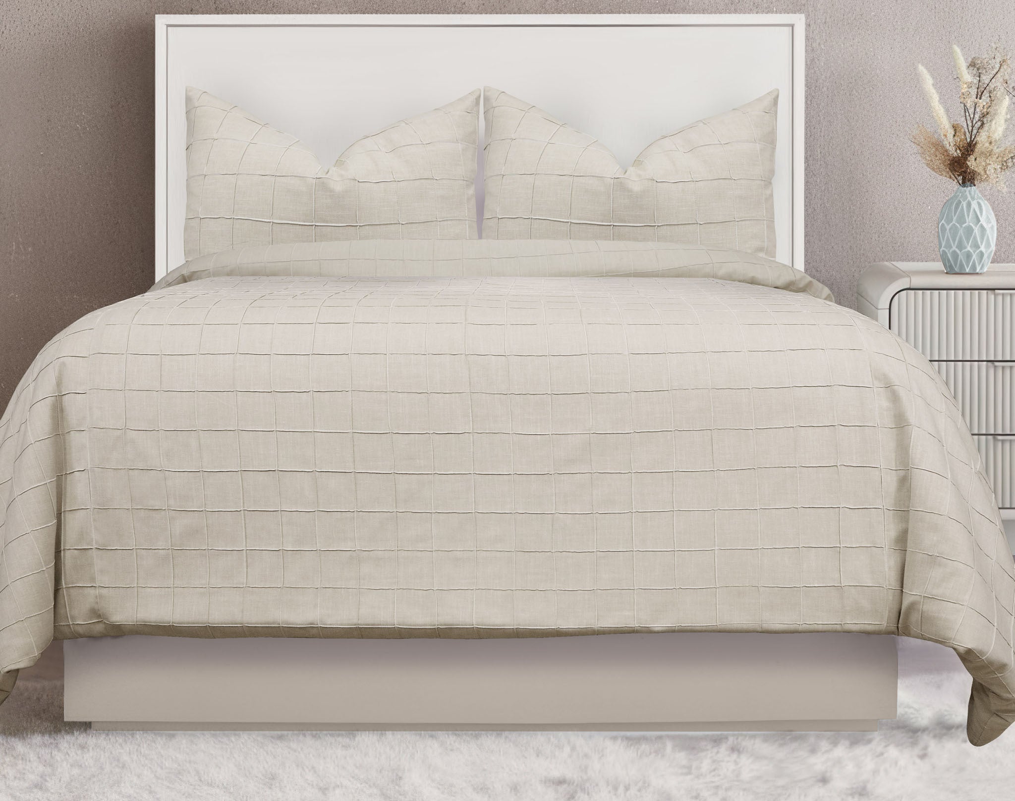 Parker Pintuck Tan 4 pc Queen Comforter Cover Set*USA-SIGNATURE*