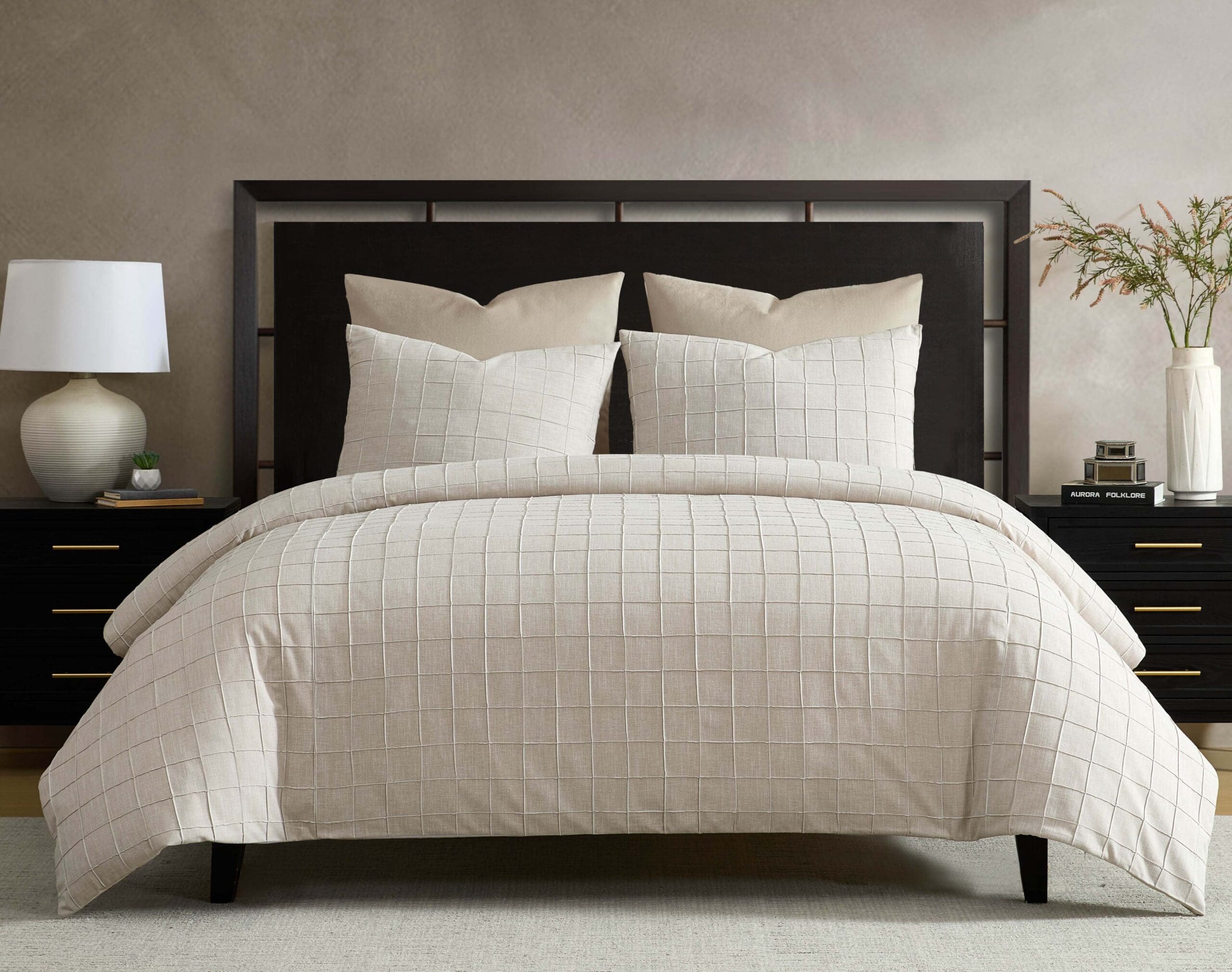 Parker Pintuck Tan 7 pc wEuro King Comforter Cover Set-USA-SIGNATURE-