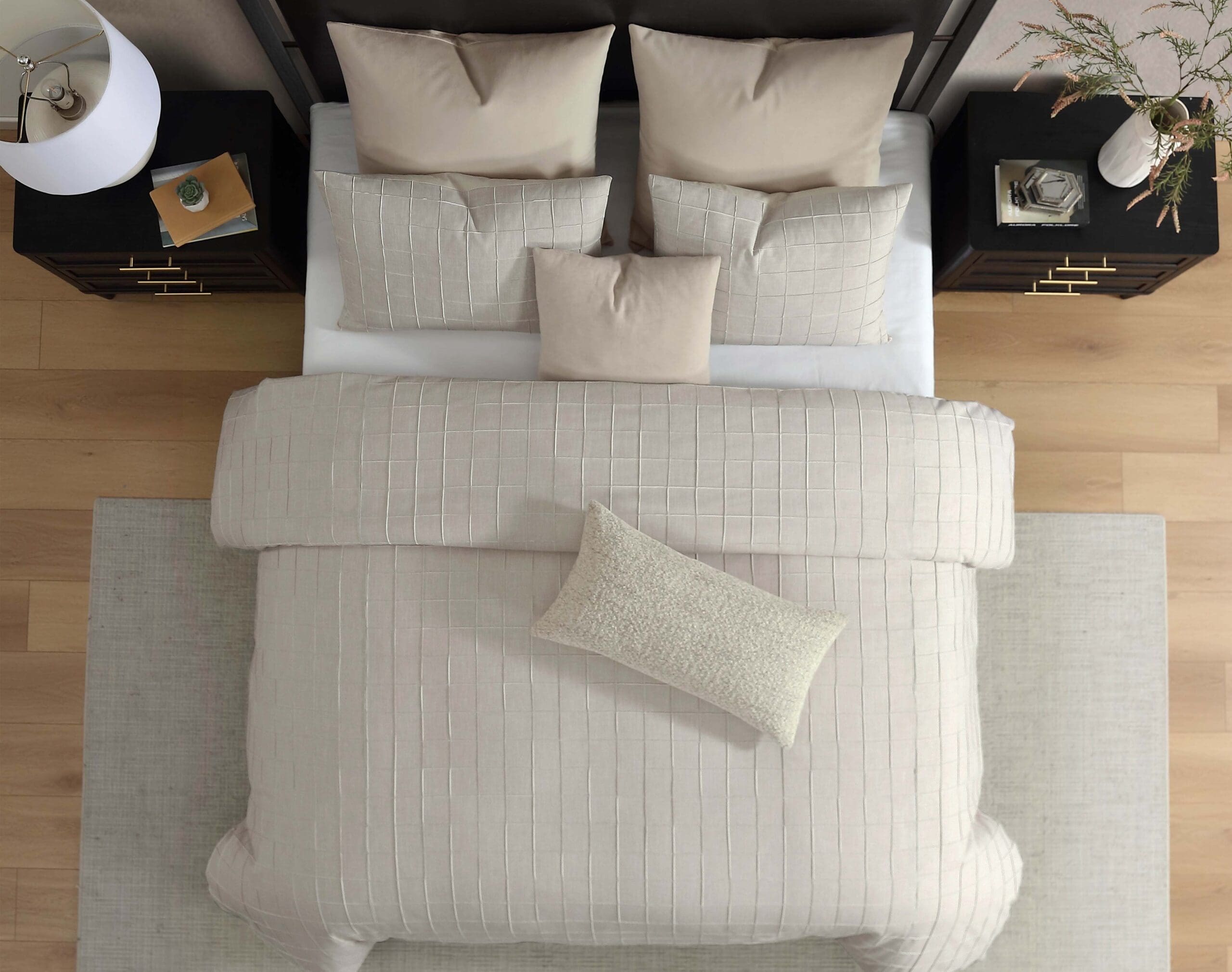 Parker Pintuck Tan 8 pc Queen Comforter Cover Set-USA-SIGNATURE-