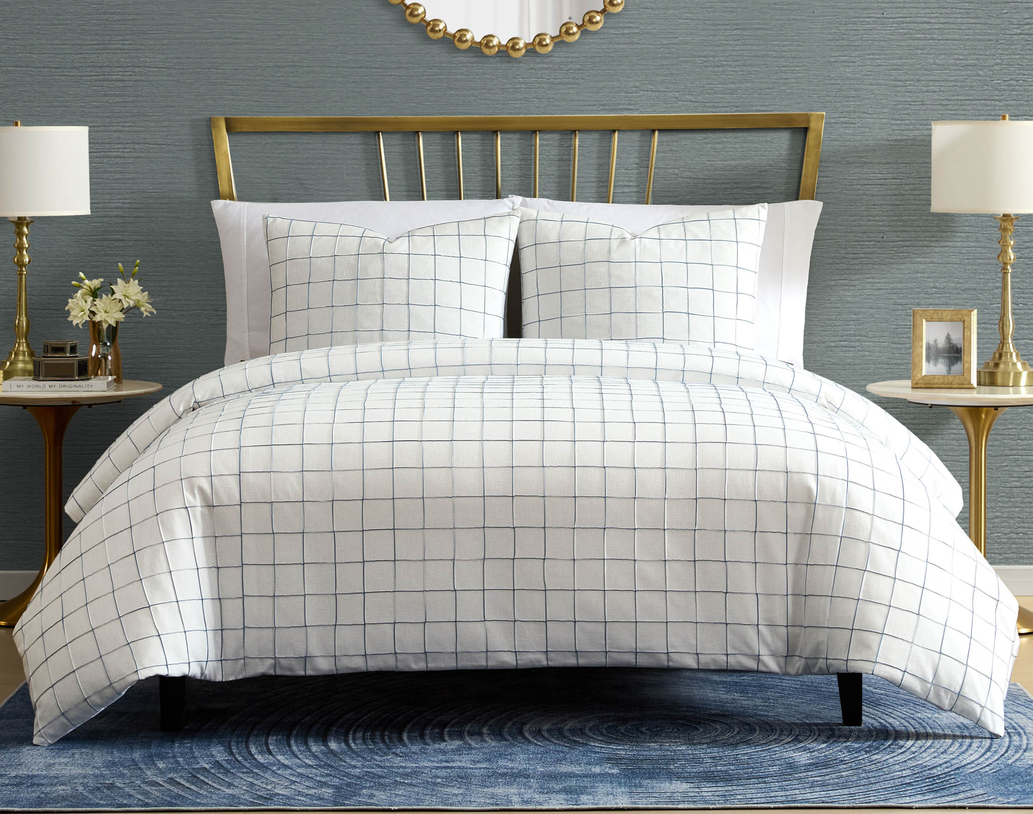 50263 | Parker Pintuck White wBlue 7 pc wEuro King Comforter Cover Set -USA-SIGNATURE- | Login to view prices |