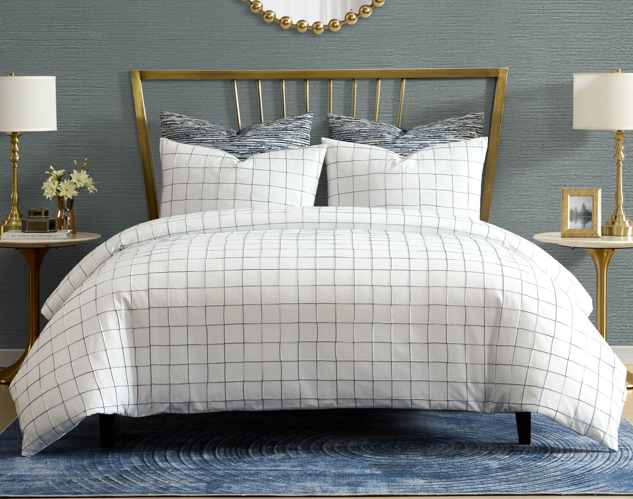 50264 | Parker Pintuck White wBlue 6 pc wEuro Queen Comforter Cover Set -USA-SIGNATURE- | Login to view prices |