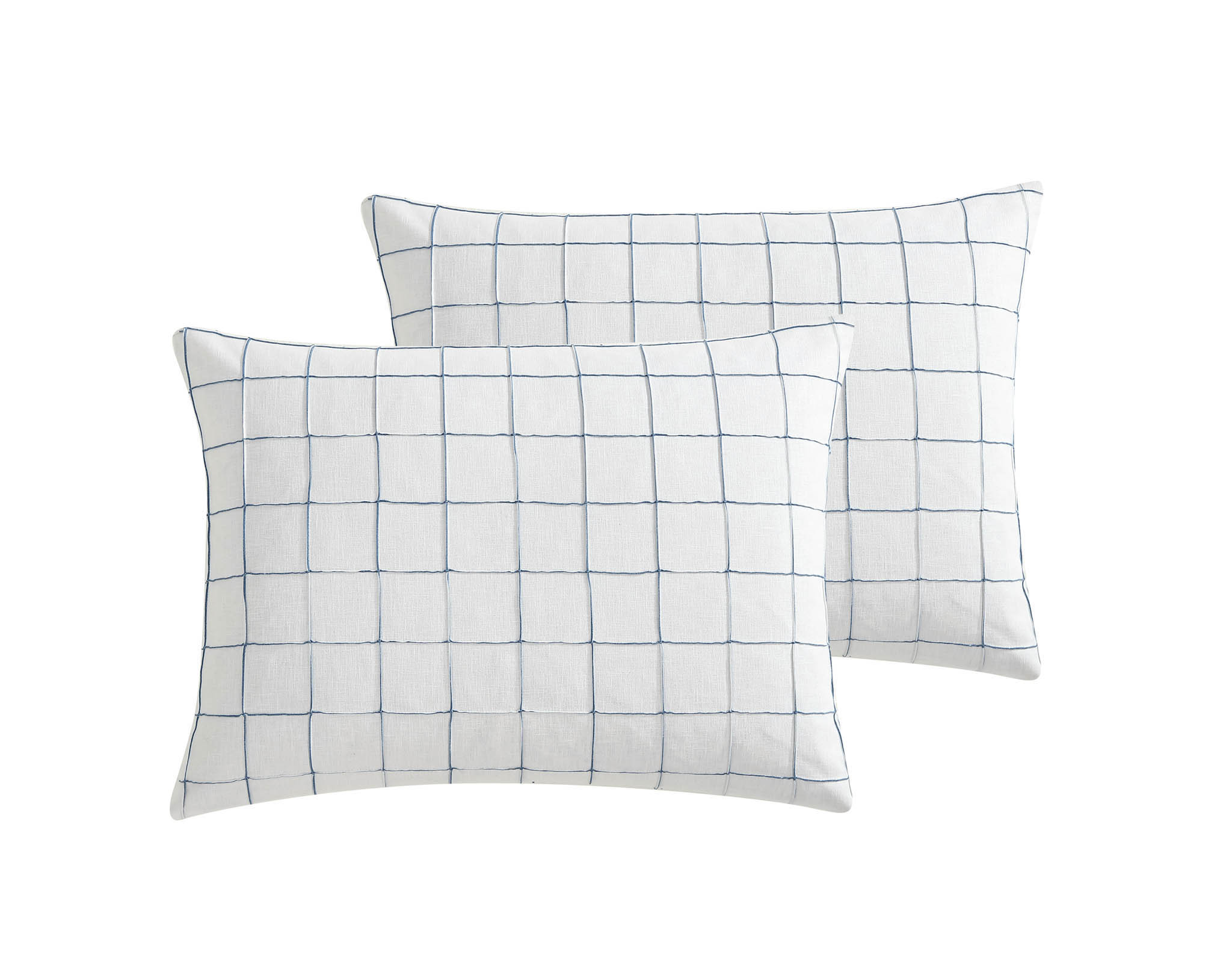 Parker Pintuck White wBlue 7 pc wEuro King Comforter Cover Set -USA-SIGNATURE-