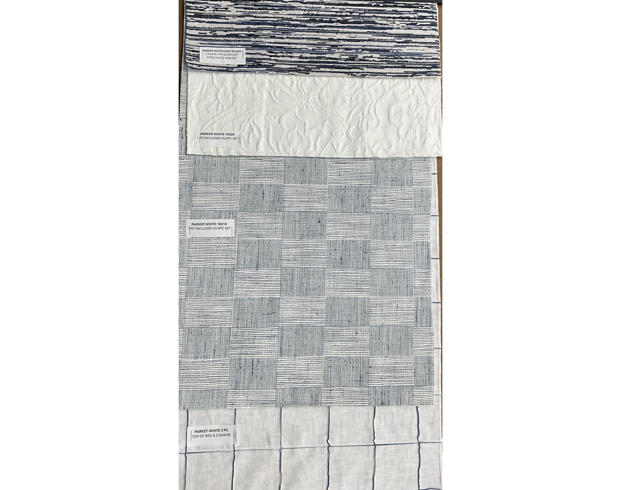 Parker Pintuck White wBlue 8 pc Queen Comforter Cover Set *USA-SIGNATURE*