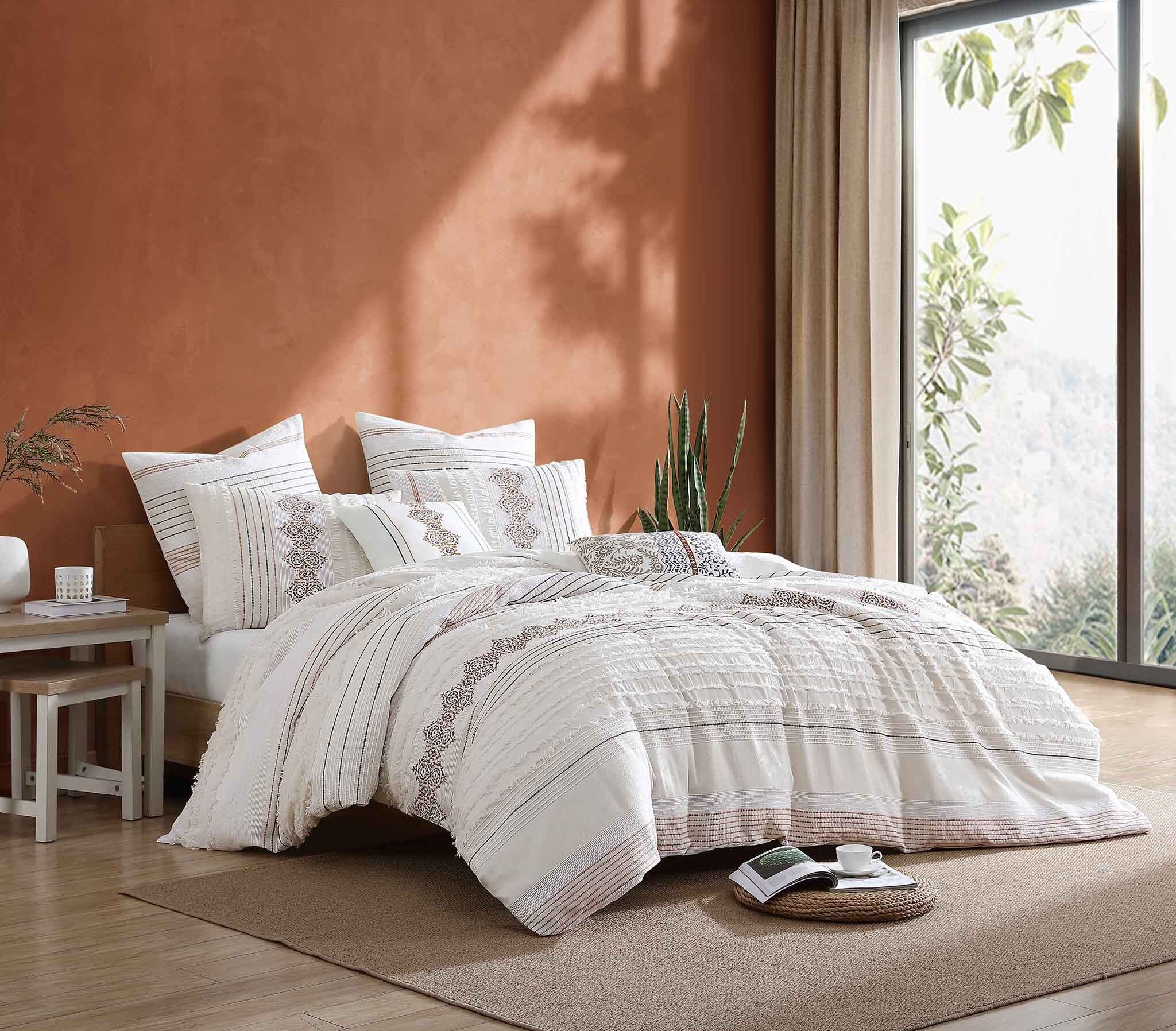 - 1 Queen Comforter (92-in W X 92-in L), 2 Standard Shams (20-in W X 26-in L), 1 18x18in dec pillow, 1 12x18in dec pillow