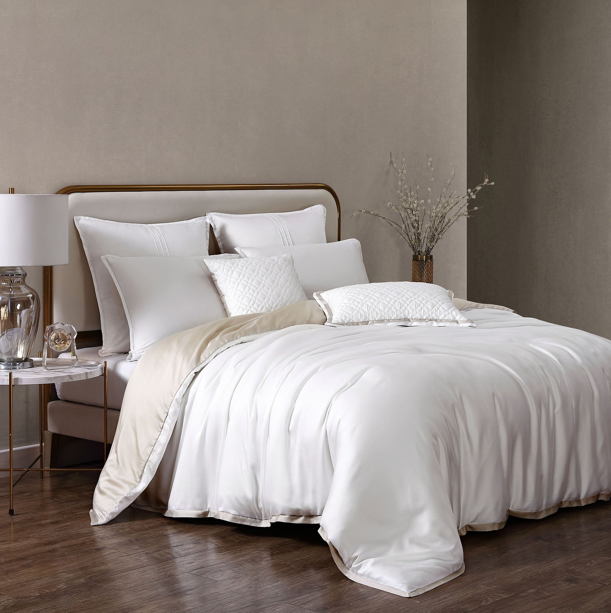 Content:100% Tencel; Filling 100% Polyester; Care: Use front load commercial washer and dryer, machine wash cold delicate, wash with like colors, Only non-chlorine bleach when needed, tumble dry low, remove promptly.